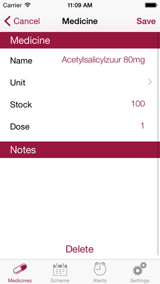 MedicineAlert is an iPhone App that notifies you when it is time to take your medicines.Features:
